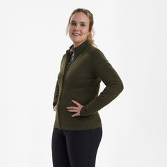 Elevate your outdoor wardrobe with the Deerhunter Lady Darlington Knit Cardigan – Green Melange, a refined blend of comfort, warmth, and timeless design.