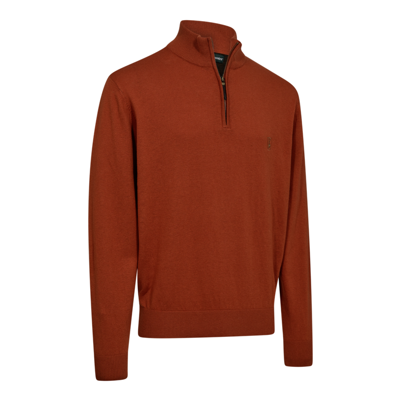 Experience versatile comfort with the Deerhunter Harrington 1/2-Zip Knit Sweater in Oak Rust Melange—a classic mid-layer designed for hunters and outdoor enthusiasts.