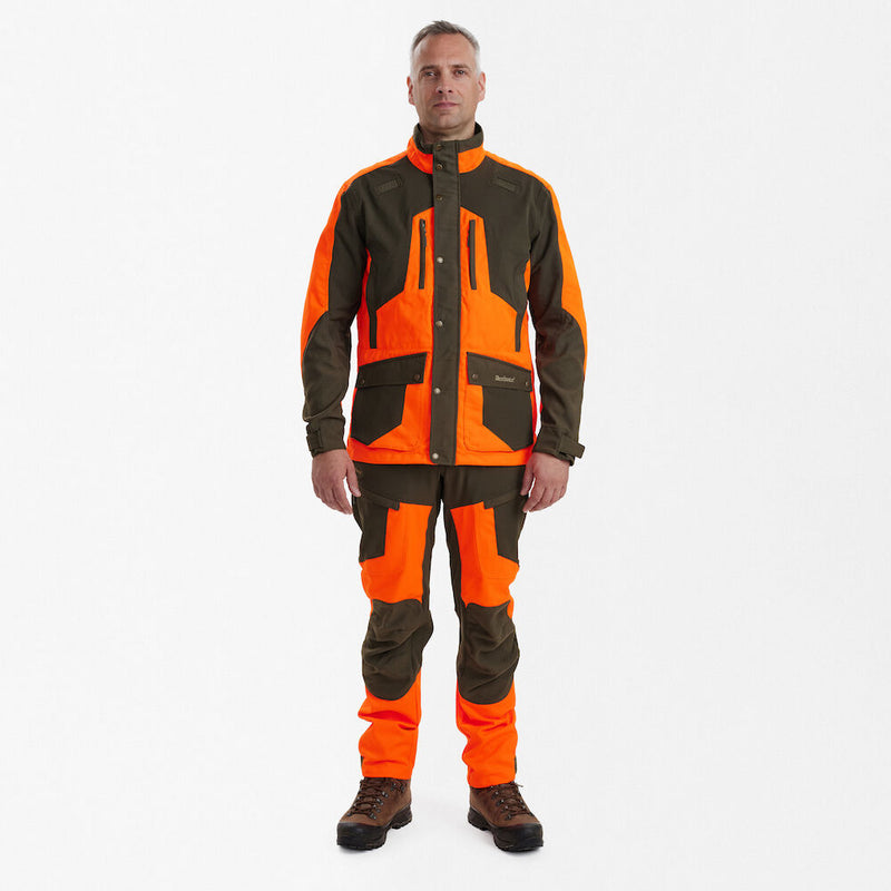 Deerhunter Strike Extreme Komplet Orange je komplet za lovce kojima su vidljivost, zaštita i sloboda pokreta na prvom mestu. Jakna i pantalone dizajnirani su kao celina – za maksimalne performanse na terenu.